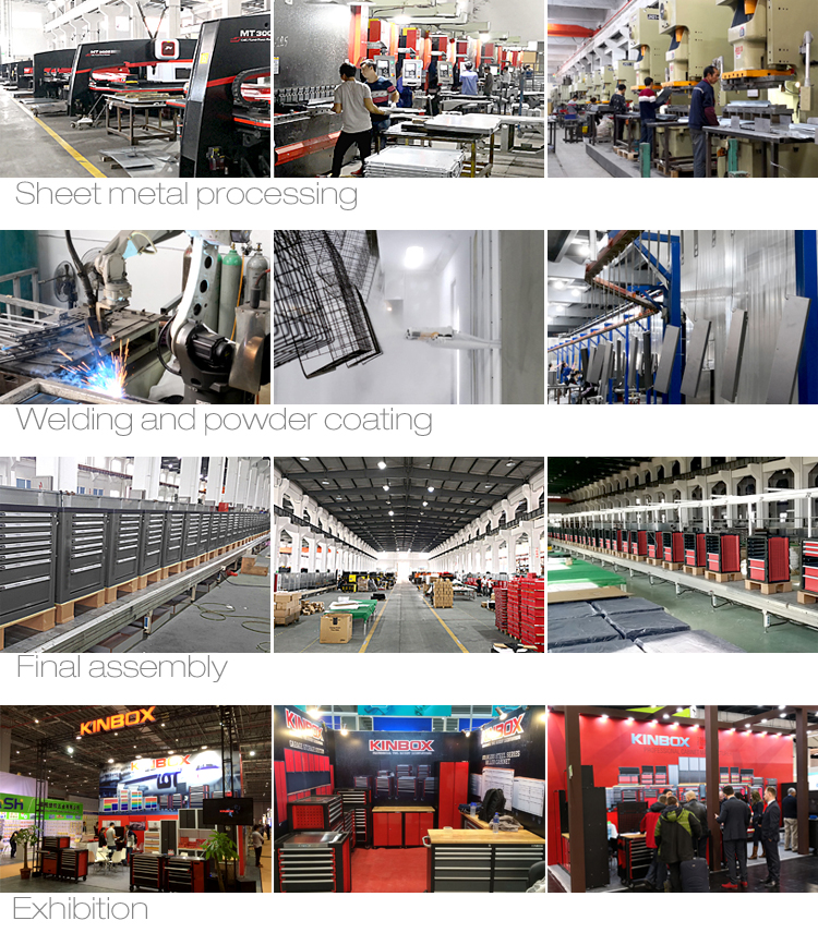 Ningbo Kinbox Tools Technology Co., Ltd. a été créé en 2013, spécialisé dans le traitement des produits en fer et en tôle. Au fil des ans, il est devenu une industrie moderne et dynamique pour la production de chariot à outils, d'armoire à outils, de chariot à outils, de système de stockage de garage et de forêt, etc.